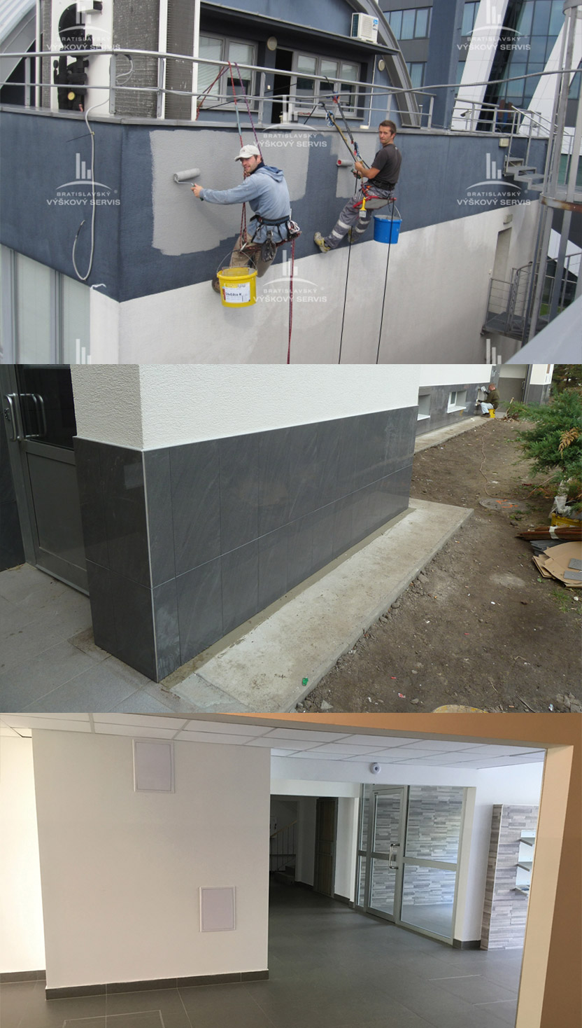 - Reprofilácie betónových konštrukcií – spevnenie a oprava betónových prvkov fasády, balkónov či lodžií.